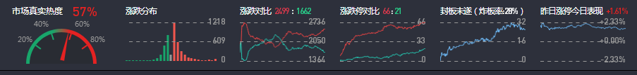 3、两市共2499只个股上涨,66只个股涨停,1662只个股下跌,21只个股跌停,23只股票炸板,炸板率28%。