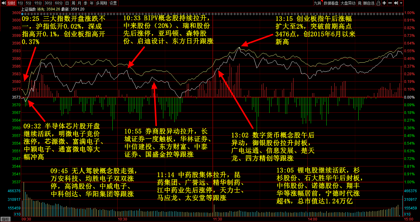 主力净流入行业板块前五:半导体,国产芯片,机械,挖掘机,LED;