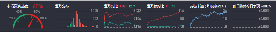 3、两市共3082只个股上涨,115只个股涨停,1207只个股下跌,13只个股跌停,20只股票炸板,炸板率22%。