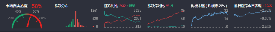 3、两市共2632只个股上涨,96只个股涨停,1582只个股下跌,9只个股跌停,47只股票炸板,炸板率21%。