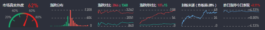3、两市共2846只个股上涨,107只个股涨停,1348只个股下跌,15只个股跌停,36只股票炸板,炸板率28%。