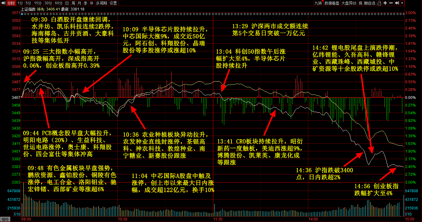 主力净流入行业板块前五:国产芯片,半导体,PCB板,光通信,民爆;