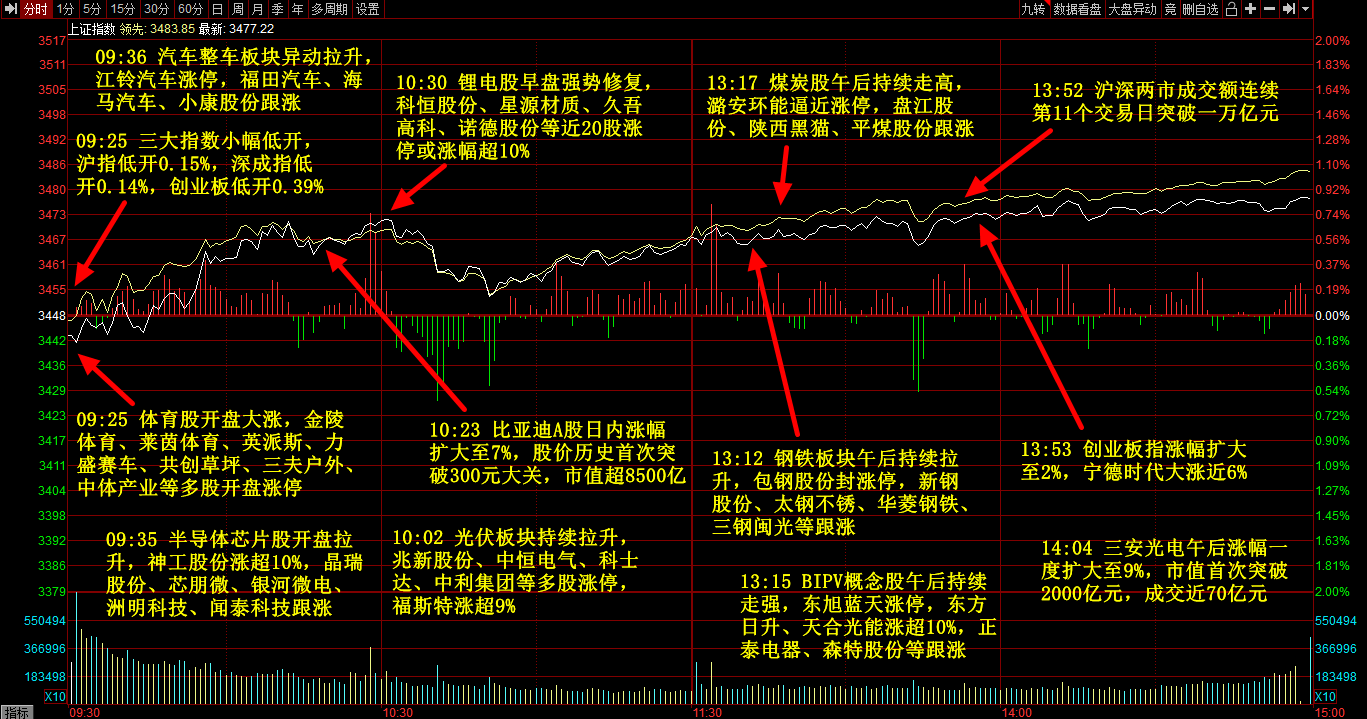 主力净流入行业板块前五:新能源汽车,锂电池,光伏,储能,国产芯片;