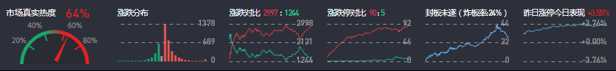 3、两市共2997只个股上涨,90只个股涨停,1244只个股下跌,5只个股跌停,22只股票炸板,炸板率24%。