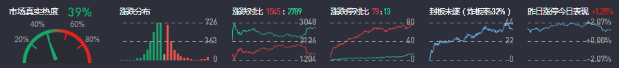 3、两市共1545只个股上涨,79只个股涨停,2789只个股下跌,13只个股跌停,29只股票炸板,炸板率32%。
