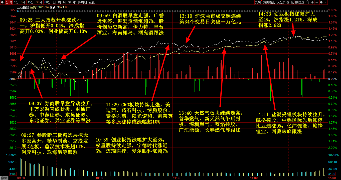 主力净流入行业板块前五:券商,大金融,白酒,医药,锂电池;