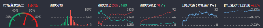 3、两市共2726只个股上涨,91只个股涨停,1663只个股下跌,12只个股跌停,10只股票炸板,炸板率11%。