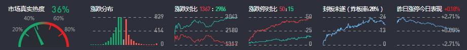 3、两市共1367只个股上涨,50只个股涨停,2986只个股下跌,15只个股跌停,16只股票炸板,炸板率28%。