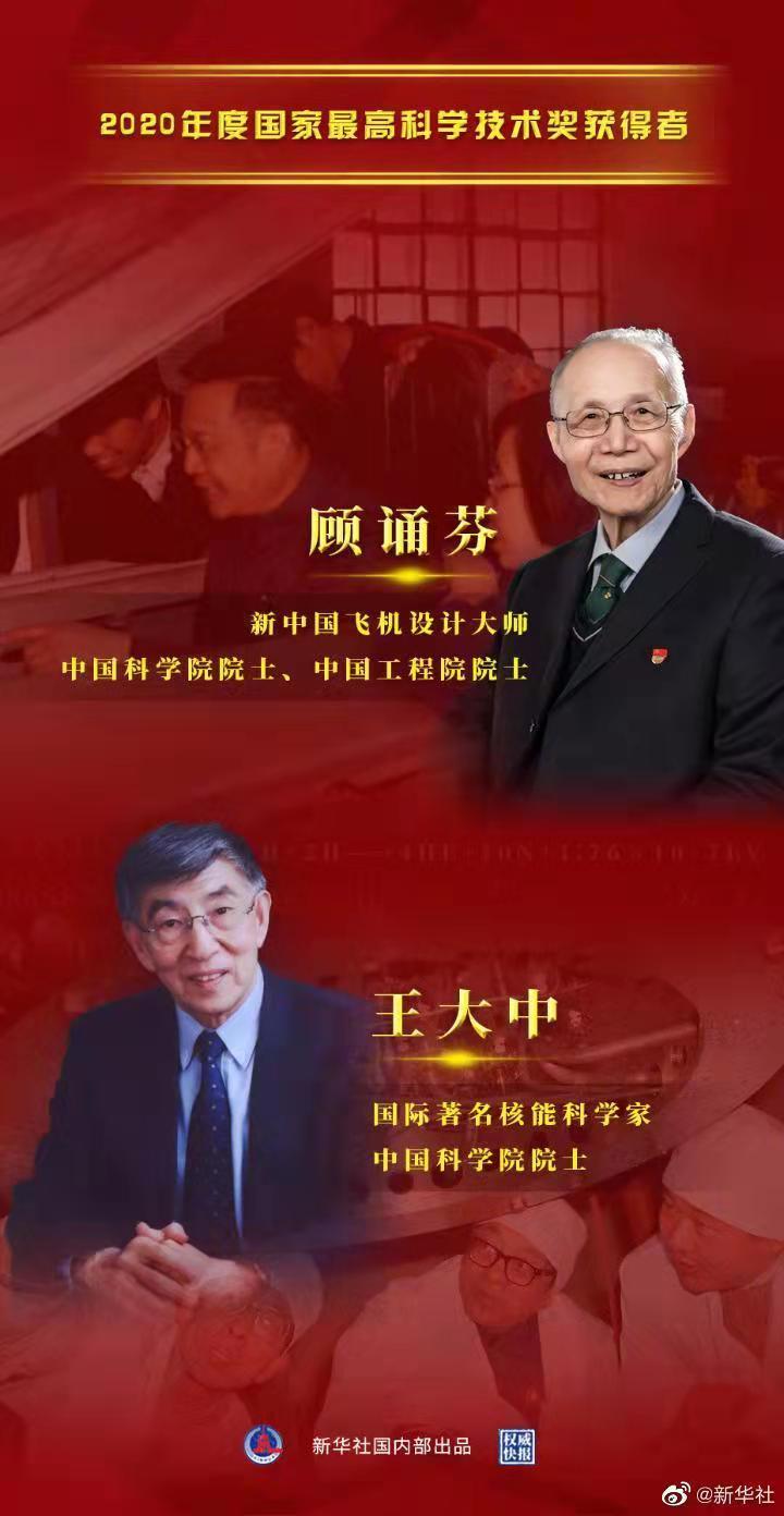 2020年度国家科学技术奖揭晓,中国航空工业集团有限公司顾诵芬院士和清华大学王大中院士分获国家最高科学技术奖。(央视新闻) 风险提示及免责条款 市场有风险,投资需谨慎。本文不构成个人投资建议,也未考虑到个别用户特殊的投资目标、财务状况或需要。用户应考虑本文中的任何意见、观点或结论是否符合其特定状况。据此投资,责任自负。