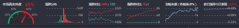 3、两市共3098只个股上涨,95只个股涨停,1225只个股下跌,3只个股跌停,19只股票炸板,炸板率21%。