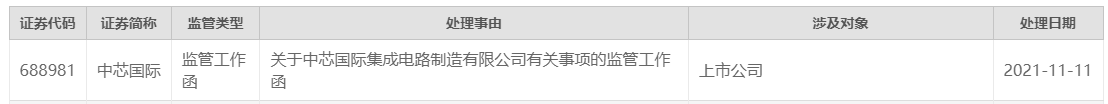 上交所向中芯国际下发关于中芯国际集成电路制造有限公司有关事项的监管工作函。(证券时报)