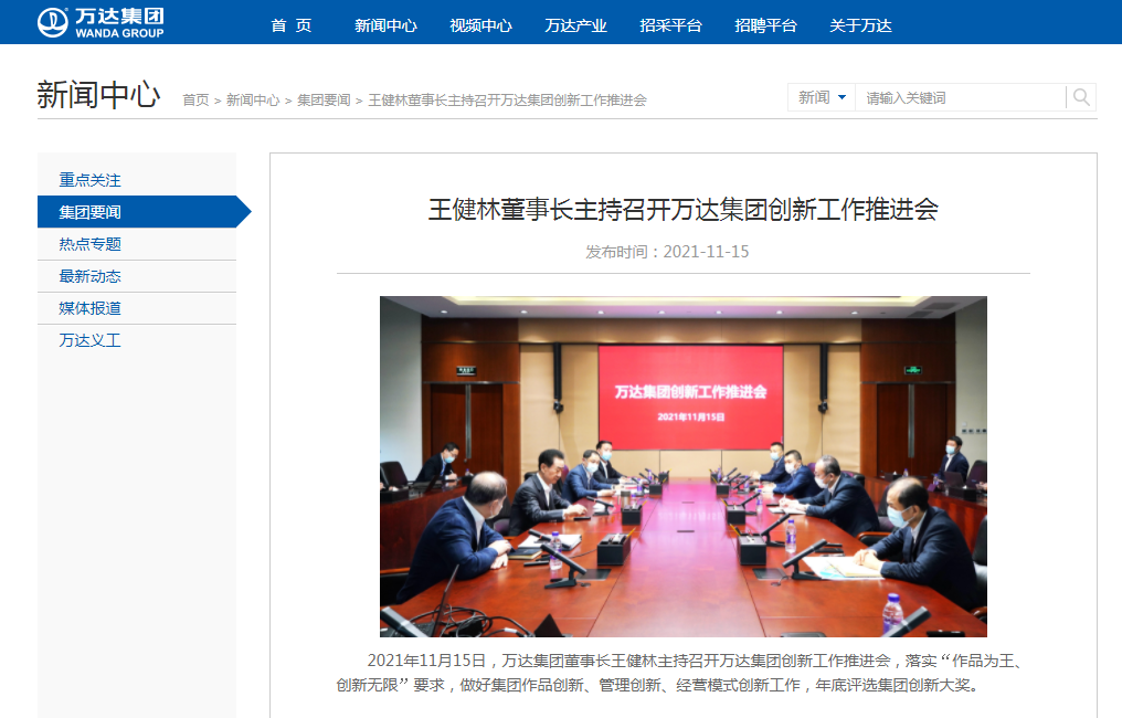万达集团官网消息,11月15日,万达集团董事长王健林主持召开万达集团创新工作推进会,落实“作品为王、创新无限”要求,做好集团作品创新、管理创新、经营模式创新工作,年底评选集团创新大奖。万达方面的人士表示,王健林“身体很好”,近年来一直保持高强度工作,且每周都给全体员工上课。(21财经)