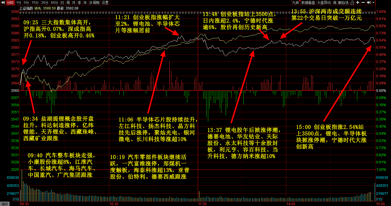主力净流入行业板块前五:锂电池,新能源汽车,半导体,国产芯片,储能;