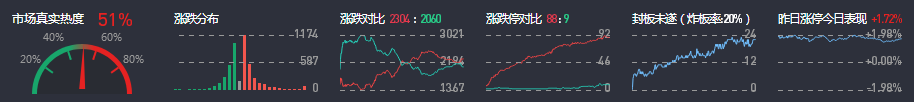3、两市共2304只个股上涨,88只个股涨停,2060只个股下跌,9只个股跌停,16只股票炸板,炸板率20%。