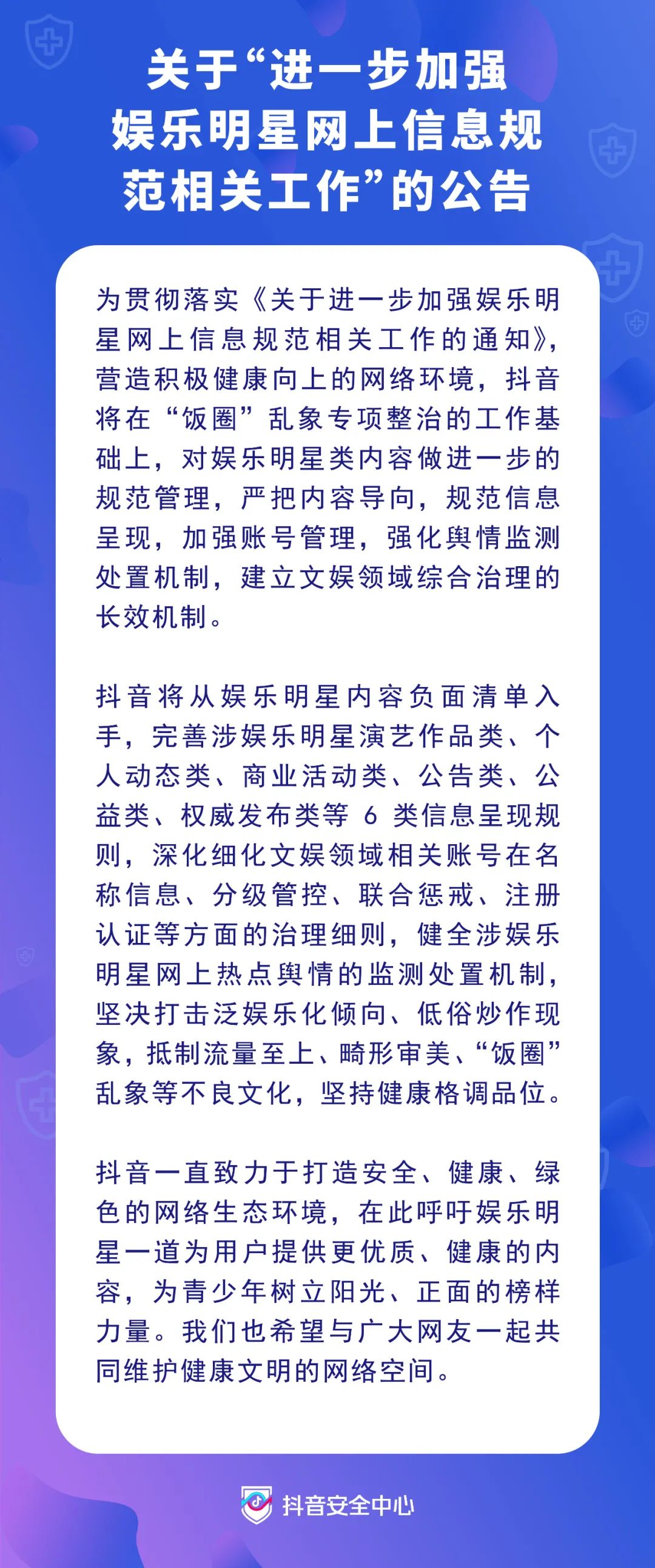 抖音将从娱乐明星内容负面清单入手,完善6类信息呈现规则。 风险提示及免责条款 市场有风险,投资需谨慎。本文不构成个人投资建议,也未考虑到个别用户特殊的投资目标、财务状况或需要。用户应考虑本文中的任何意见、观点或结论是否符合其特定状况。据此投资,责任自负。