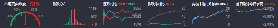 3、两市共2268只个股上涨,87只个股涨停,2139只个股下跌,17只个股跌停,30只股票炸板,炸板率28%。