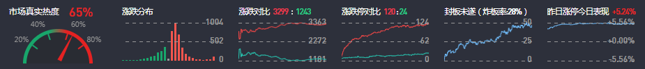 3、两市共3299只个股上涨,120只个股涨停,1243只个股下跌,24只个股跌停,41只股票炸板,炸板率28%。