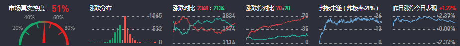 3、两市共2348只个股上涨,70只个股涨停,2134只个股下跌,20只个股跌停,17只股票炸板,炸板率21%。