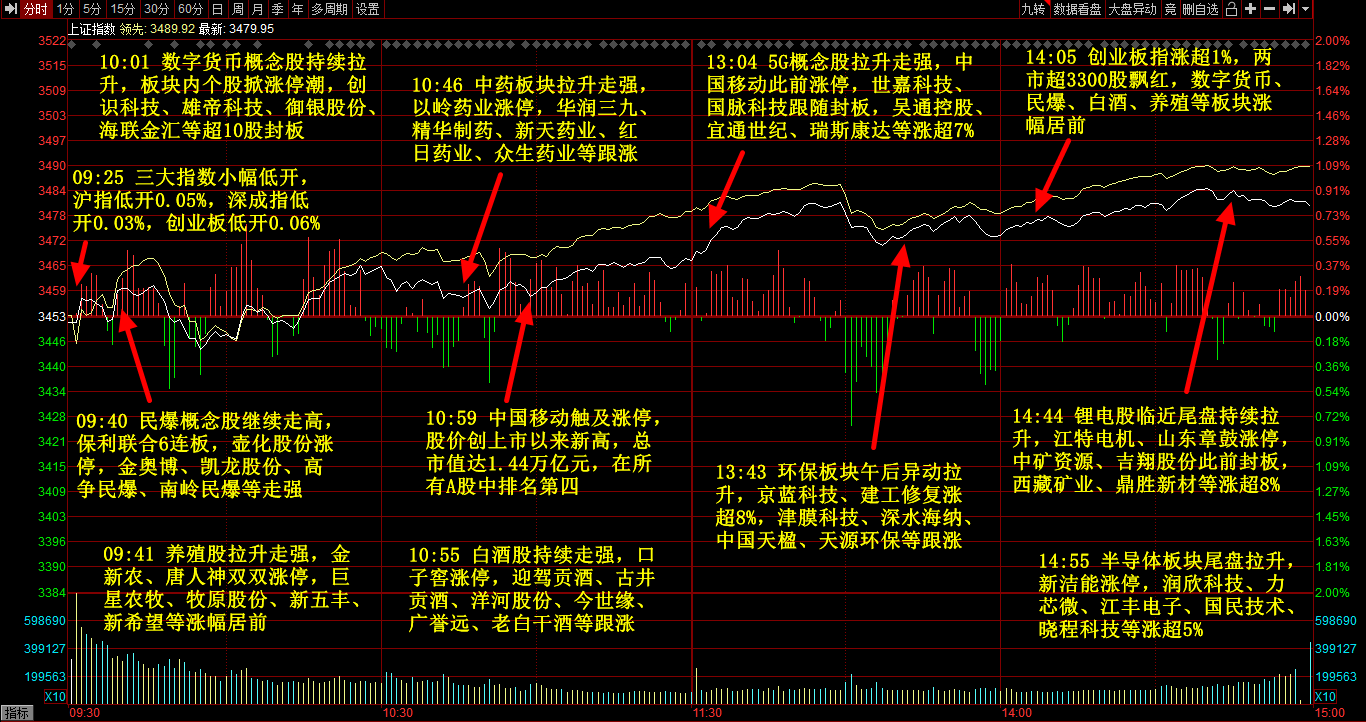 主力净流入个股前十:中国移动、五粮液、紫金矿业、江特电机、西藏矿业、洋河股份、牧原股份、铜陵有色、比亚迪、智飞生物