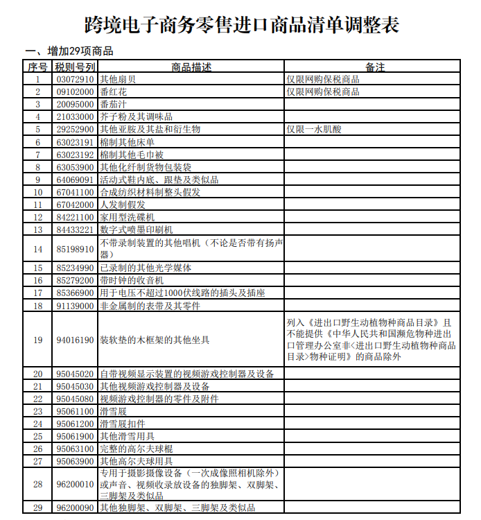 近日,财政部等8部门发布公告,自2022年3月1日起,优化调整跨境电子商务零售进口商品清单。 此次调整,在跨境电子商务零售进口商品清单(2019年版)基础上,增加了滑雪用具、家用洗碟机、番茄汁等29项近年来消费需求旺盛的商品。同时,根据近年我国税则税目变化情况调整了部分商品的税则号列,根据监管要求调整优化了部分清单商品备注。
