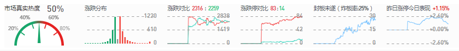 3、两市共2308只个股上涨,83只个股涨停,2264只个股下跌,14只个股跌停,炸板率25%。