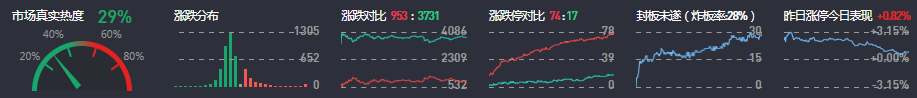 3、两市共953只个股上涨,74只个股涨停,3731只个股下跌,17只个股跌停,28只股票炸板,炸板率28%。