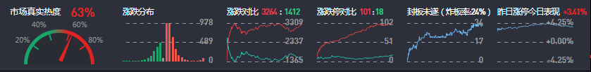 3、两市共3264只个股上涨,101只个股涨停,1412只个股下跌,18只个股跌停,28只股票炸板,炸板率24%。