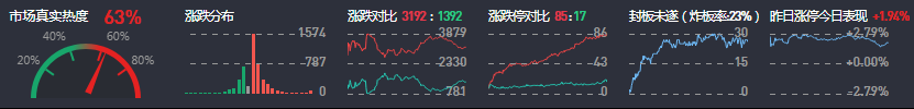 3、两市共3192只个股上涨,85只个股涨停,1392只个股下跌,17只个股跌停,21只股票炸板,炸板率23%。
