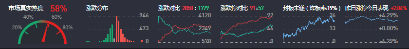 3、两市共2858只个股上涨,91只个股涨停,1779只个股下跌,57只个股跌停,17只股票炸板,炸板率19%。