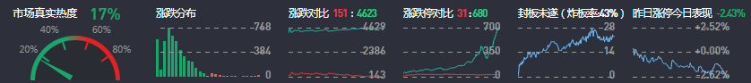 3、两市共151只个股上涨,只个股涨停,只个股下跌,只个股跌停,14只股票炸板,炸板率43%。