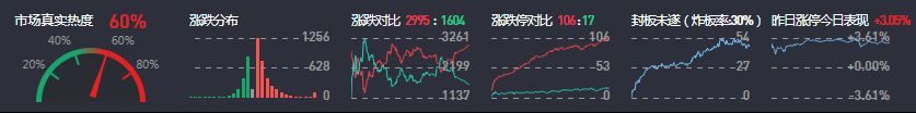 3、两市共2995只个股上涨,106只个股涨停,1604只个股下跌,17只个股跌停,40只股票炸板,炸板率30%。