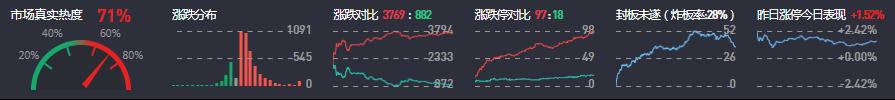3、两市共3769只个股上涨,97只个股涨停,882只个股下跌,18只个股跌停,35只股票炸板,炸板率28%。