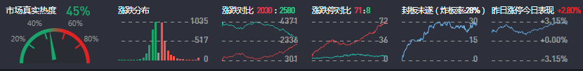 3、两市共2030只个股上涨,71只个股涨停,2580只个股下跌,8只个股跌停,23只股票炸板,炸板率28%。