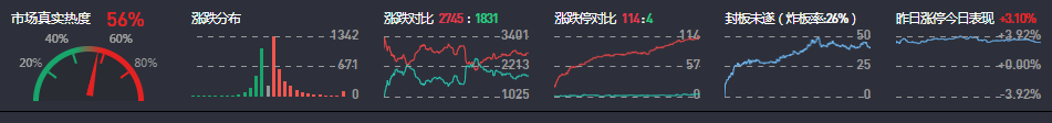 3、两市共2745只个股上涨,114只个股涨停,1831只个股下跌,4只个股跌停,39只股票炸板,炸板率26%。