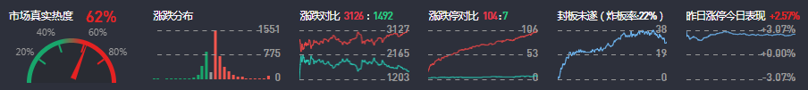 3、两市共3126只个股上涨,104只个股涨停,1492只个股下跌,7只个股跌停,25只股票炸板,炸板率22%。