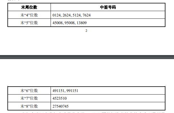 紫燕食品:中签号码共有37800个,每个中签号码只能认购1000股紫燕食品 A 股股票。 风险提示及免责条款 市场有风险,投资需谨慎。本文不构成个人投资建议,也未考虑到个别用户特殊的投资目标、财务状况或需要。用户应考虑本文中的任何意见、观点或结论是否符合其特定状况。据此投资,责任自负。