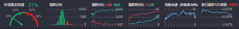 3、两市共438只个股上涨,42只个股涨停,4463只个股下跌,28只个股跌停,7只股票炸板,炸板率16%。