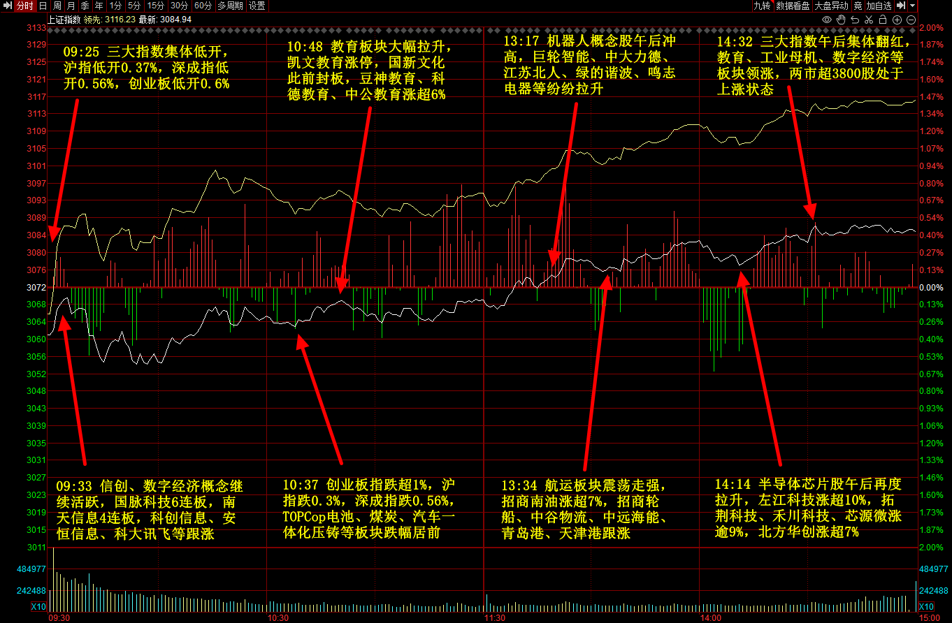 主力净流入行业板块前五:军工,OLED,半导体,通用航空,教育;