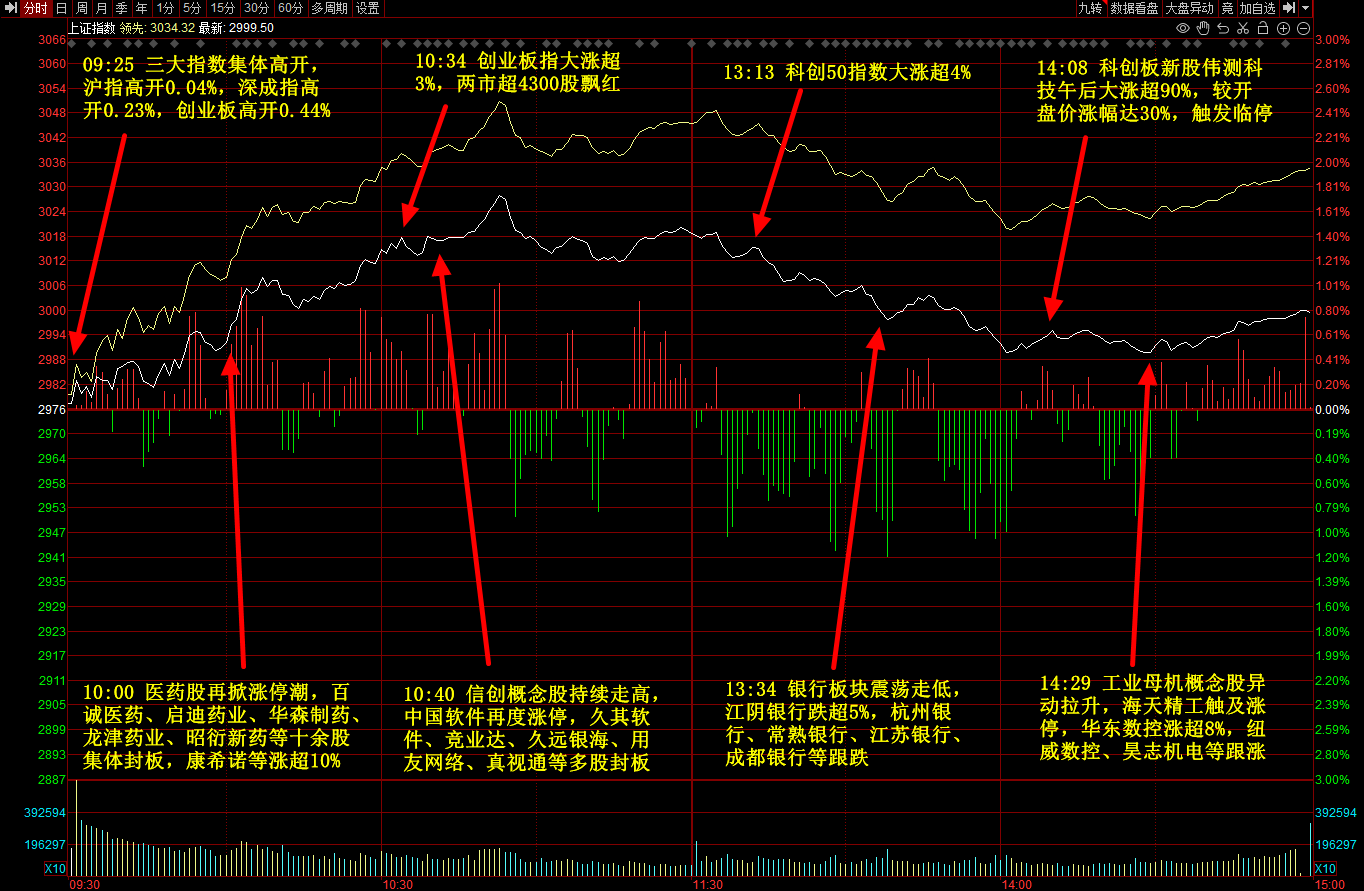 主力净流入行业板块前五:医药,国产软件,创新药,国产芯片,半导体;