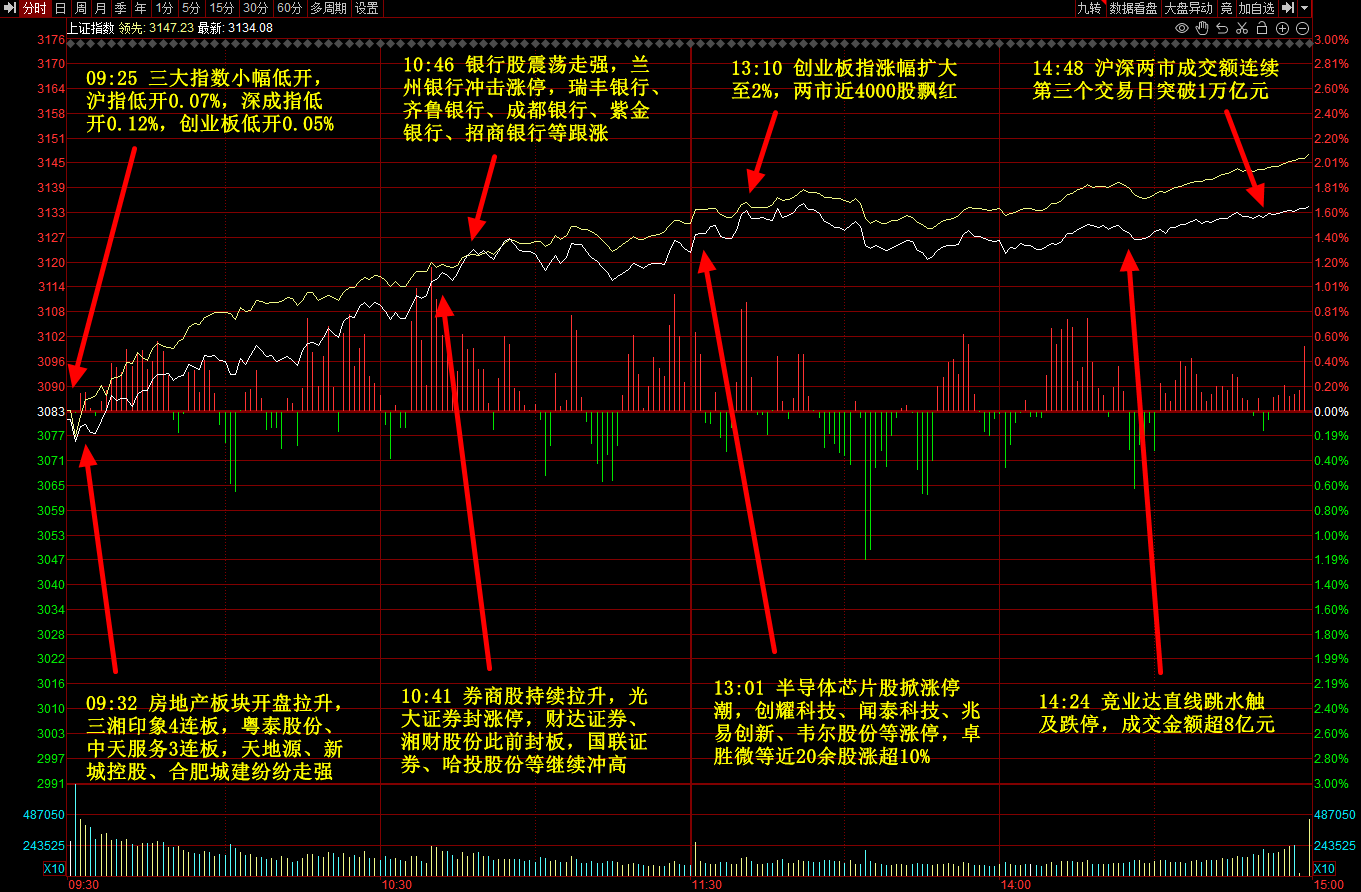 主力净流入行业板块前五:国产芯片,半导体,大金融,券商,手机产业链;