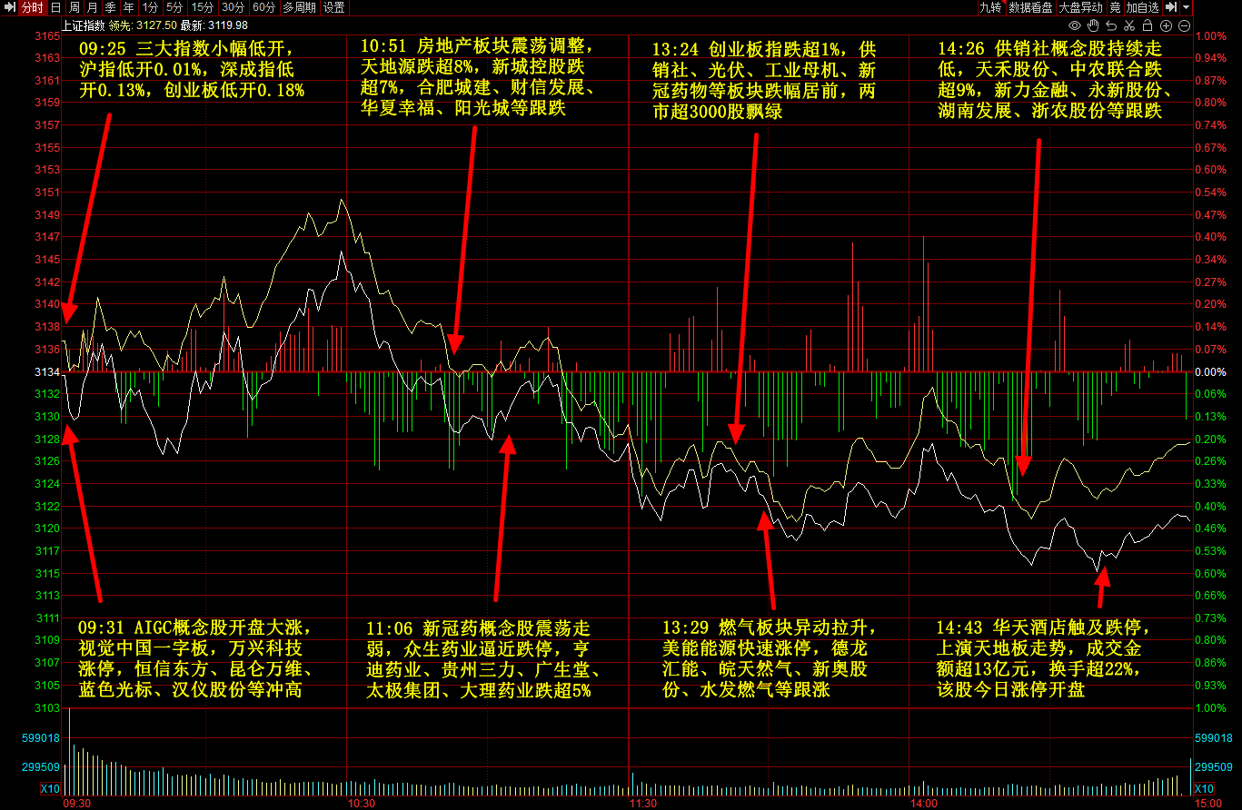 主力净流入概念板块前五:直播/短视频,军工集团,AIGC概念,徐翔概念股,应急产业;