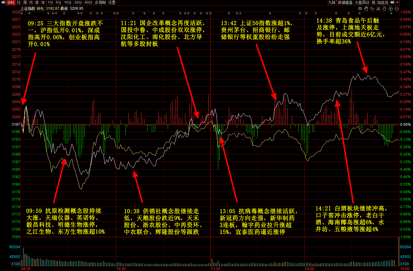 主力净流入概念板块前五:大消费,抗原自测,长三角一体化,物联网,住房租赁;