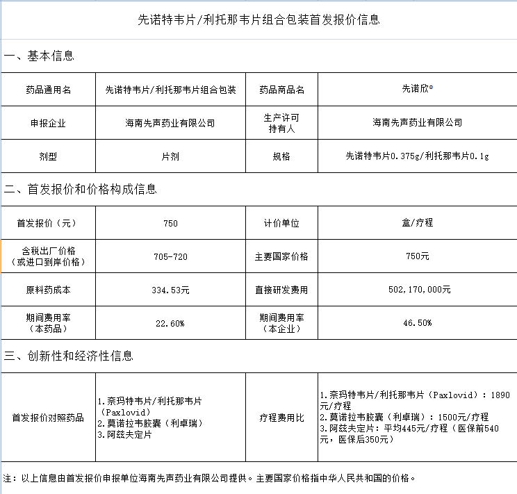 北京市医保局公示,先声药业新冠治疗药品先诺特韦片/利托那韦片组合包装先诺欣®首发报价750元/盒,含税出厂价格(或进口到岸价格)705-720元/盒。 风险提示及免责条款 市场有风险,投资需谨慎。本文不构成个人投资建议,也未考虑到个别用户特殊的投资目标、财务状况或需要。用户应考虑本文中的任何意见、观点或结论是否符合其特定状况。据此投资,责任自负。