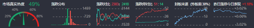 3、两市共2303只个股上涨,51只个股涨停,2418只个股下跌,14只个股跌停,20只股票炸板,炸板率30%。