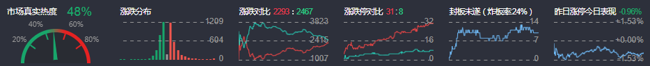 3、两市共2293只个股上涨,31只个股涨停,2467只个股下跌,8只个股跌停,8只股票炸板,炸板率24%。