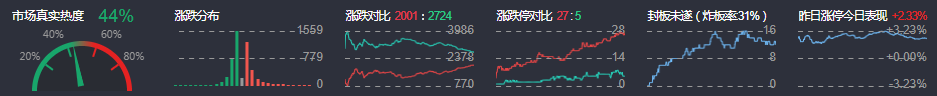 3、两市共2001只个股上涨,27只个股涨停,2724只个股下跌,5只个股跌停,9只股票炸板,炸板率31%。