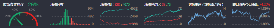 3、两市共828只个股上涨,33只个股涨停,4070只个股下跌,73只个股跌停,5只股票炸板,炸板率18%。