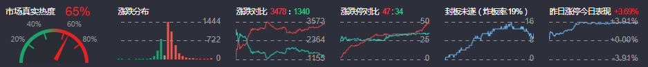 3、两市共3478只个股上涨,47只个股涨停,1340只个股下跌,34只个股跌停,7只股票炸板,炸板率19%。