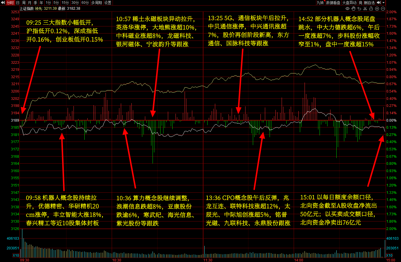 主力净流入行业板块前五:光通信,新能源车零部件,手机产业链,稀土磁材,汽车零部件;