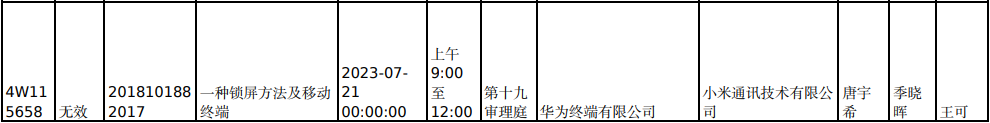 国家知识产权局7月3日发布口审公告显示,小米近期对华为专利“ZL201810188201.7”发起了无效宣告请求,该专利的名称为“一种锁屏方法及移动终端”,将于7月21日口审。 风险提示及免责条款 市场有风险,投资需谨慎。本文不构成个人投资建议,也未考虑到个别用户特殊的投资目标、财务状况或需要。用户应考虑本文中的任何意见、观点或结论是否符合其特定状况。据此投资,责任自负。